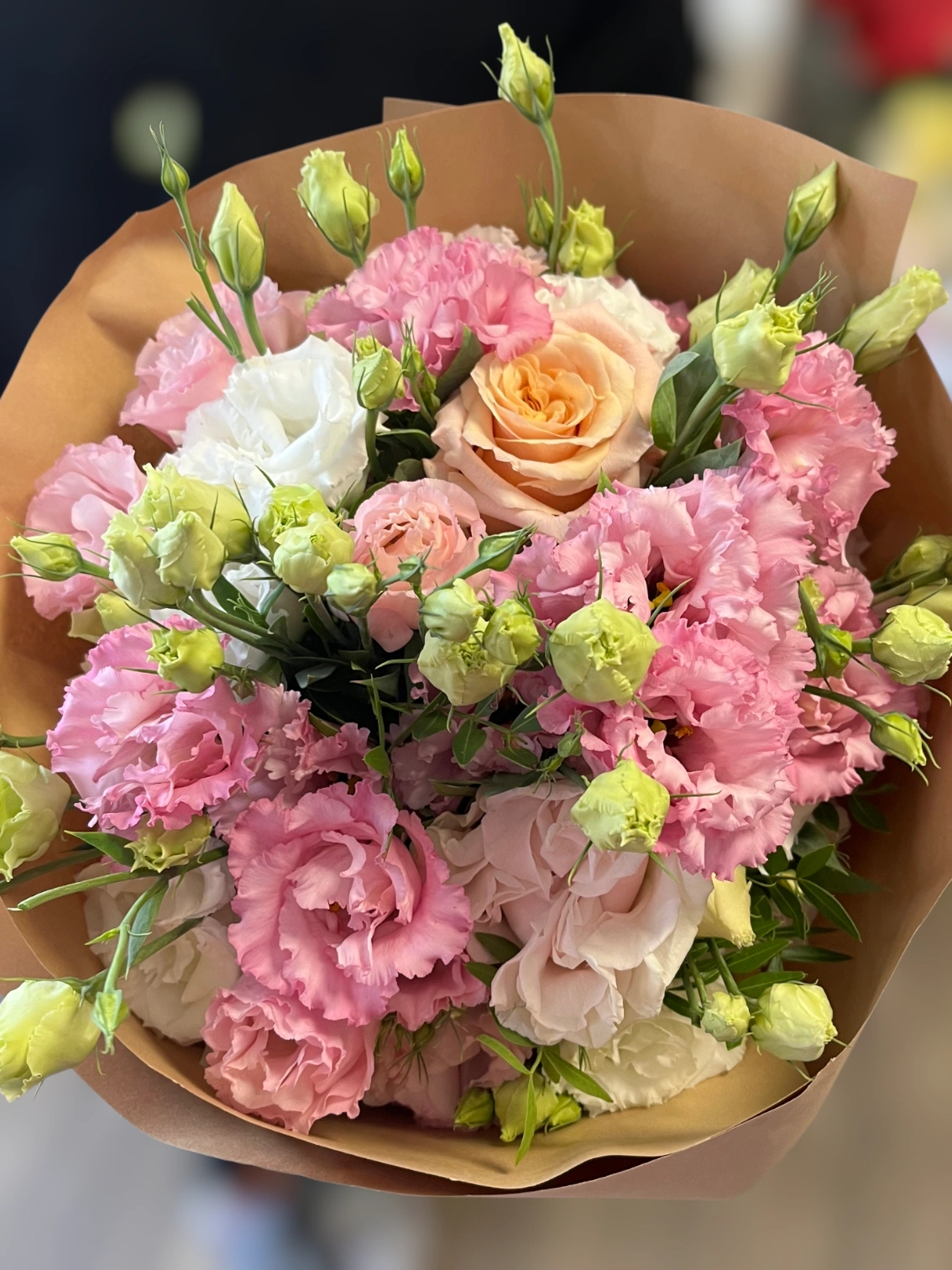 Ez a csokor mint egy gyengéd suttogás, a rózsaszín és krém virágok finom harmóniája. Tökéletes választás születésnapra, névnapra, anyák napjára vagy csak egy kedves meglepetésként.